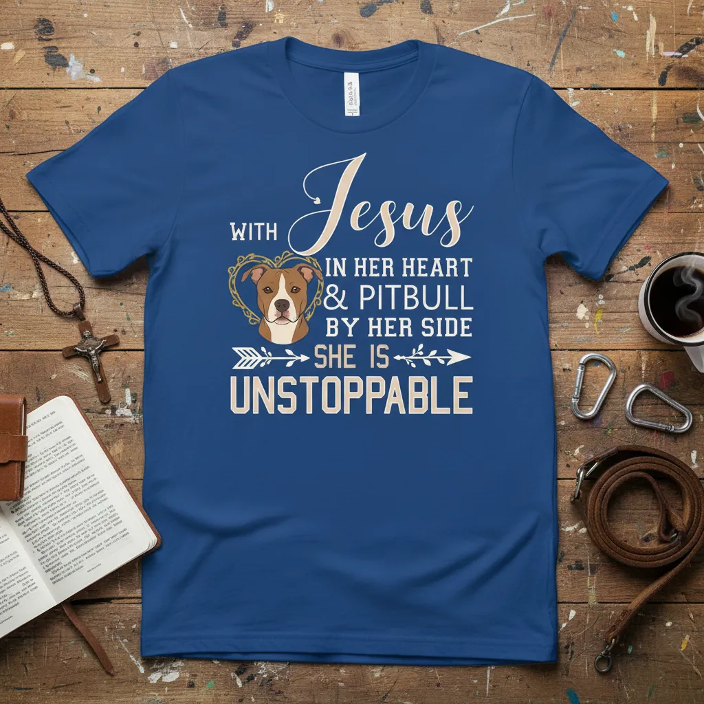 Looking for a thoughtful gift that truly speaks to the heart? This “With Jesus In Her Heart & Pitbull By Her Side She Is Unstoppable” t-shirt is an exceptional choice for birthdays, holidays, or just because. It’s designed for the dog mom, the faithful woman, and anyone who believes in the power of love and spiritual connection.