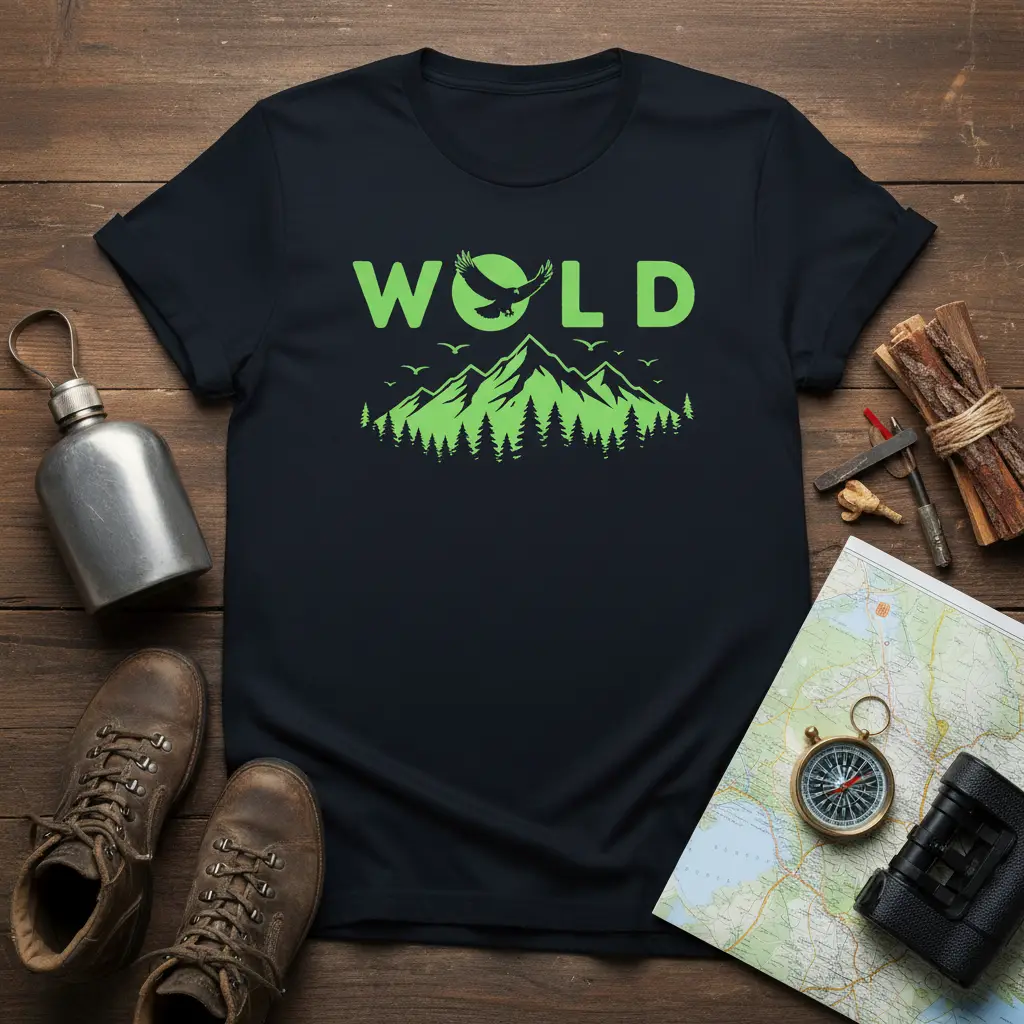 Wearing this WOLD t-shirt is like carrying a piece of the wild with you, wherever you go. It’s a reminder to embrace challenges, seek new horizons, and appreciate the simple, profound beauty of the natural world. Let the mountains, trees, and soaring eagle inspire your everyday journey and fuel your desire for adventure. Get ready to explore your WOLD.