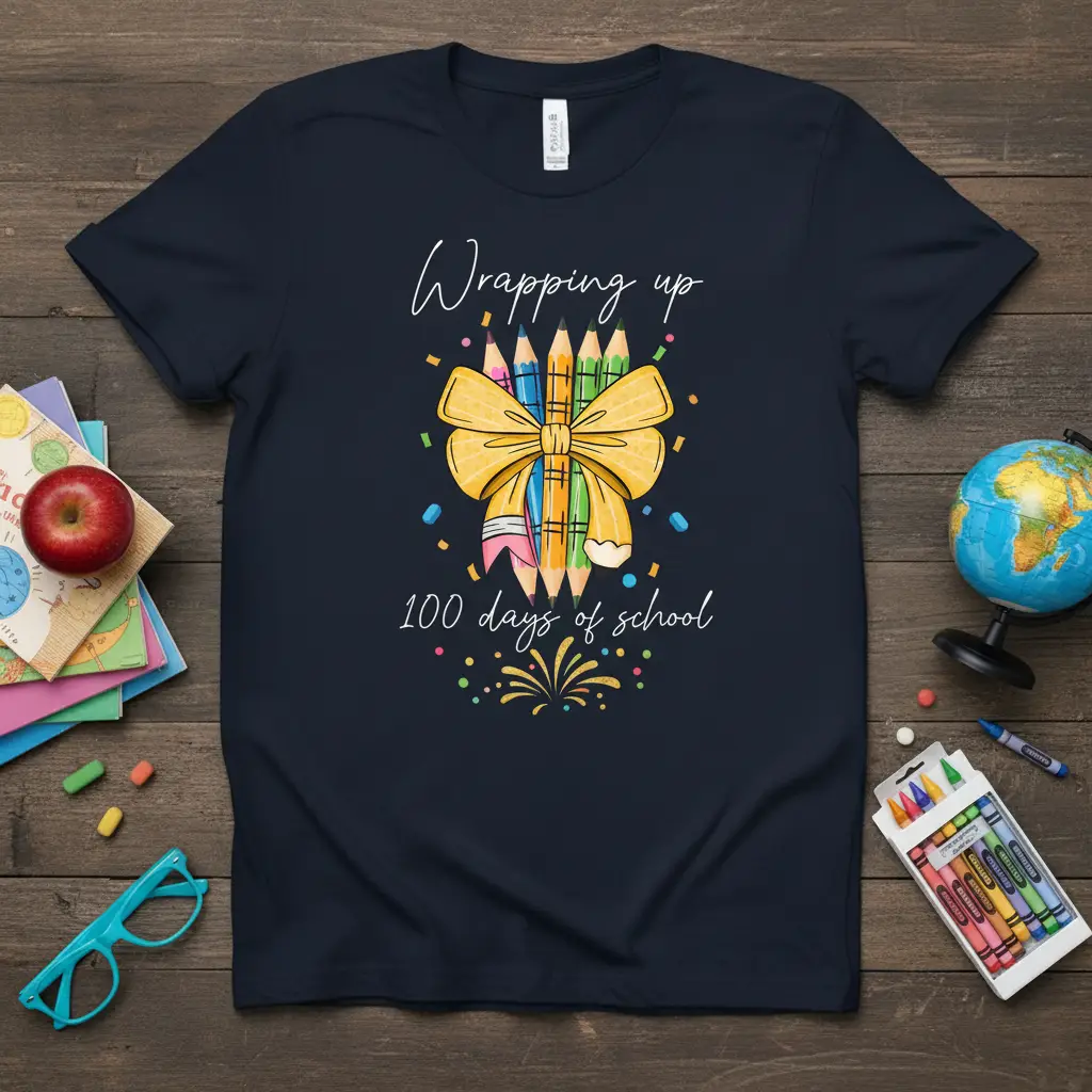 Reaching the 100-day mark in the school year is a testament to the perseverance and engagement of everyone involved in education. This unique t-shirt serves as a wearable badge of honor for teachers who have guided their students through this important phase. This Wrapping up 100 days of school design incorporates elements that are synonymous with learning and creativity, making it an ideal choice for celebrating this academic achievement. It’s more than just clothing; it’s a symbol of the educational journey.