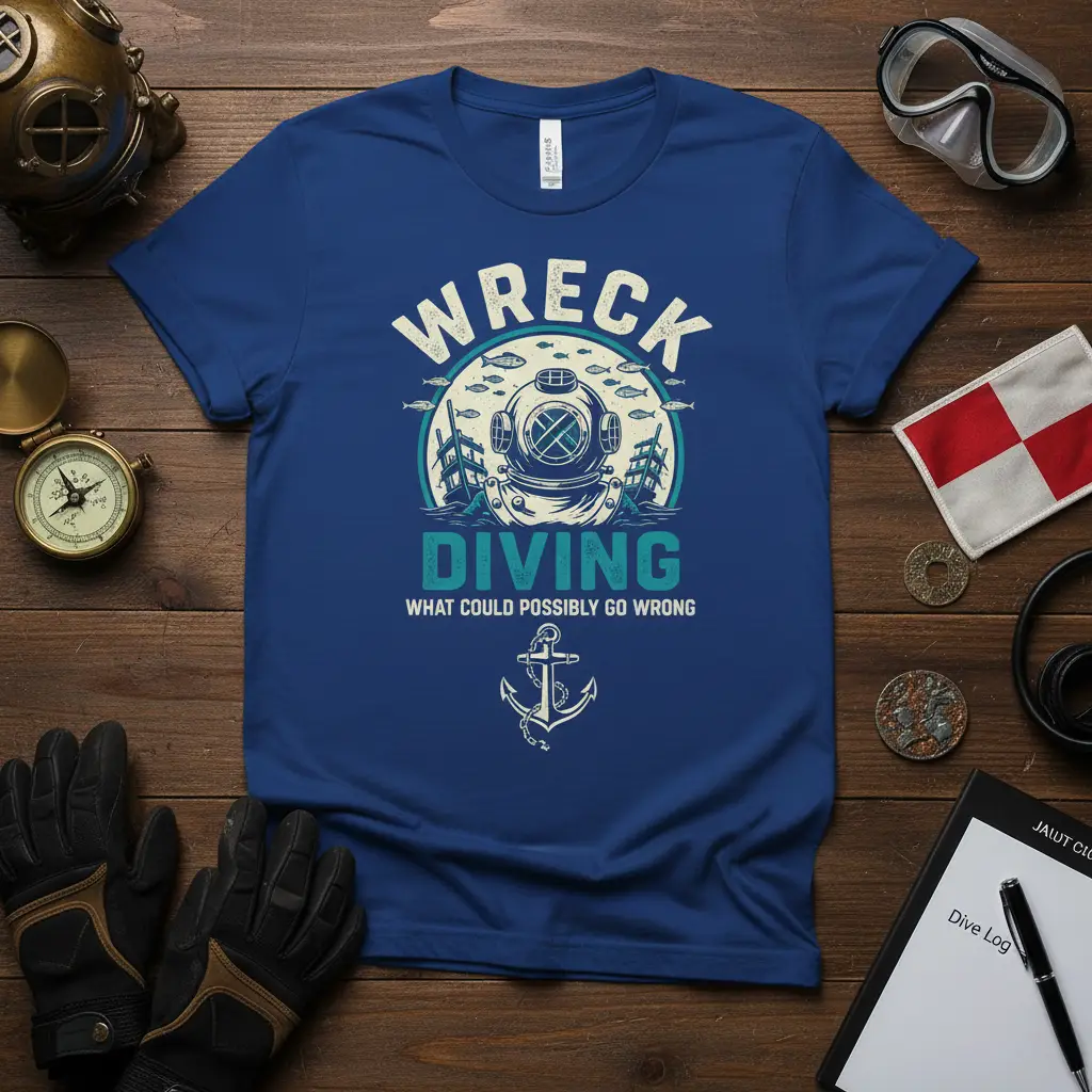 For those who live and breathe the ocean, this apparel is a must-have. It’s crafted for comfort and durability, ensuring you can wear your passion proudly whether you’re on a boat, at a dive shop, or simply relaxing at home. The design appeals to a specific niche of adventurers who appreciate both the seriousness of their hobby and the lighthearted moments it can provide. It celebrates the courage and curiosity that drives divers to explore the hidden depths and uncover the secrets that lie beneath the surface of our vast oceans. This shirt is more than just clothing; it’s a badge of honor for the dedicated wreck diver.