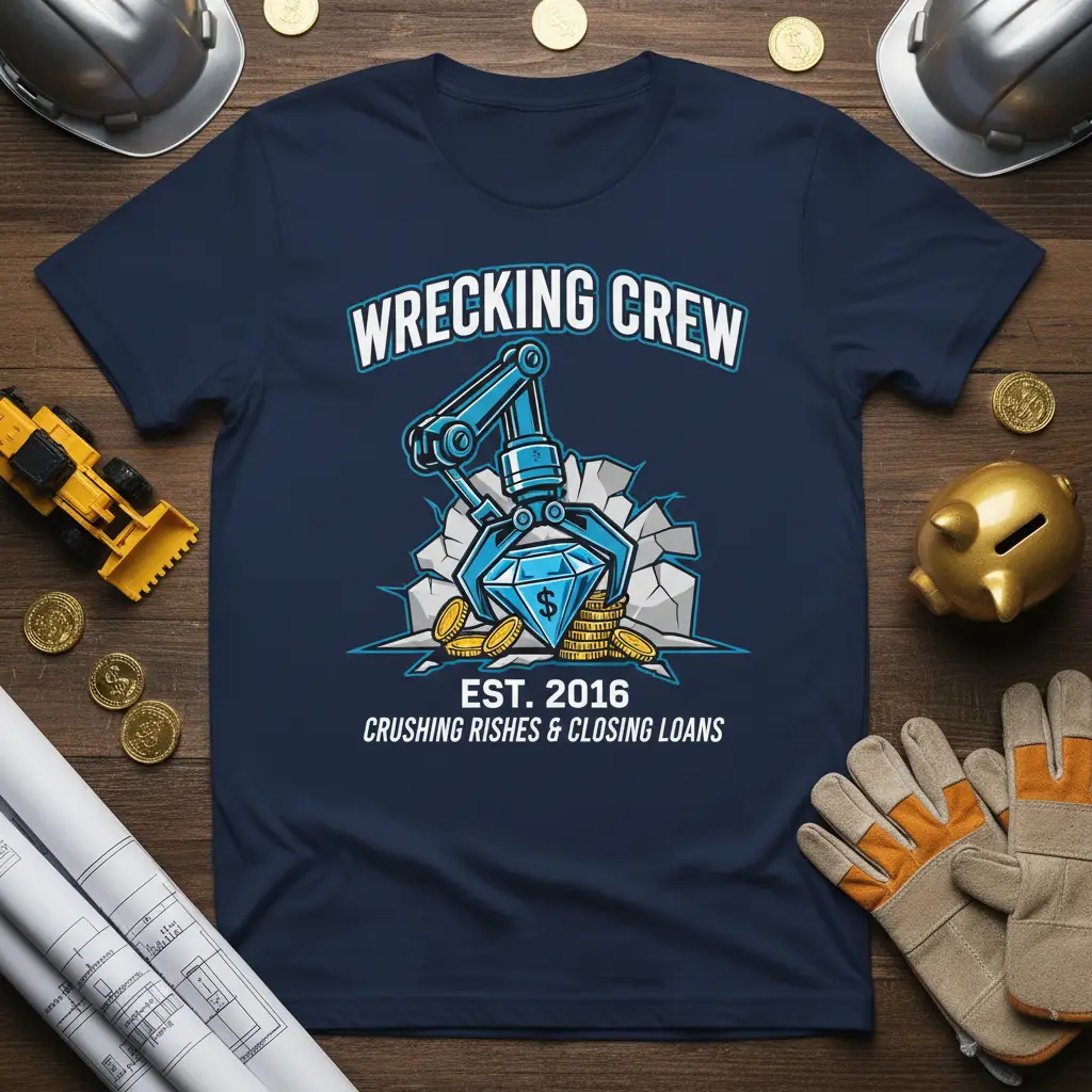 The Wrecking Crew Est. 2016 t-shirt is more than just clothing; it’s a declaration of your professional identity and success. It speaks to the dedication, strategy, and hard work that goes into achieving financial goals and closing significant deals. Wear it with pride and let the world know that you are part of the elite group that is truly crushing it in the industry. Order yours today and wear your success story!