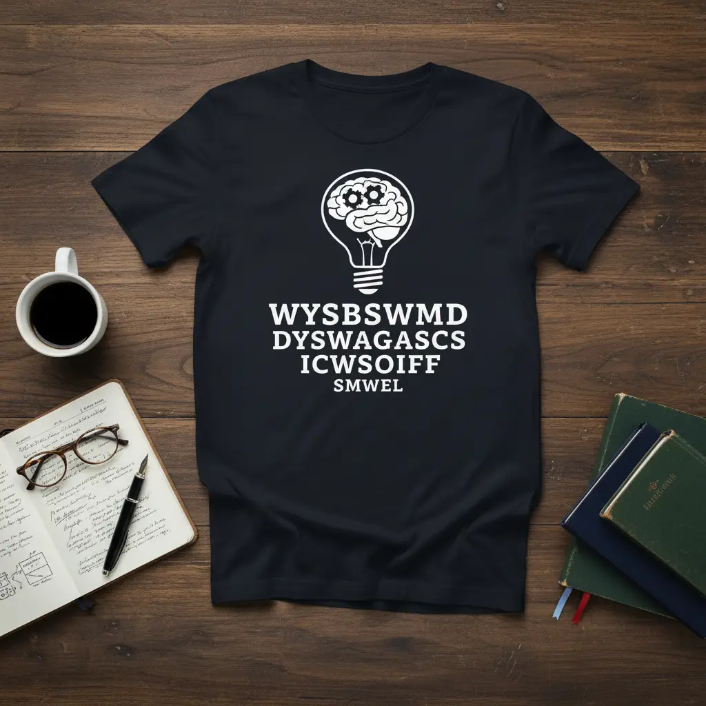 WYSBSWMD DYSWAGASCS ICWSOIFF SMWEL, this cryptic phrase emblazoned on a t-shirt, invites curiosity and sparks conversation. It’s more than just a design; it’s an intellectual puzzle waiting to be solved, perfect for those who delight in deciphering codes and challenging their minds. This unique garment is crafted for the thinkers, the problem-solvers, and anyone who enjoys a touch of mystery in their wardrobe. The accompanying graphic of a lightbulb filled with gears and a brain further emphasizes the theme of intelligence and innovation. It’s a statement piece that speaks volumes about the wearer’s sharp wit and love for mental gymnastics.