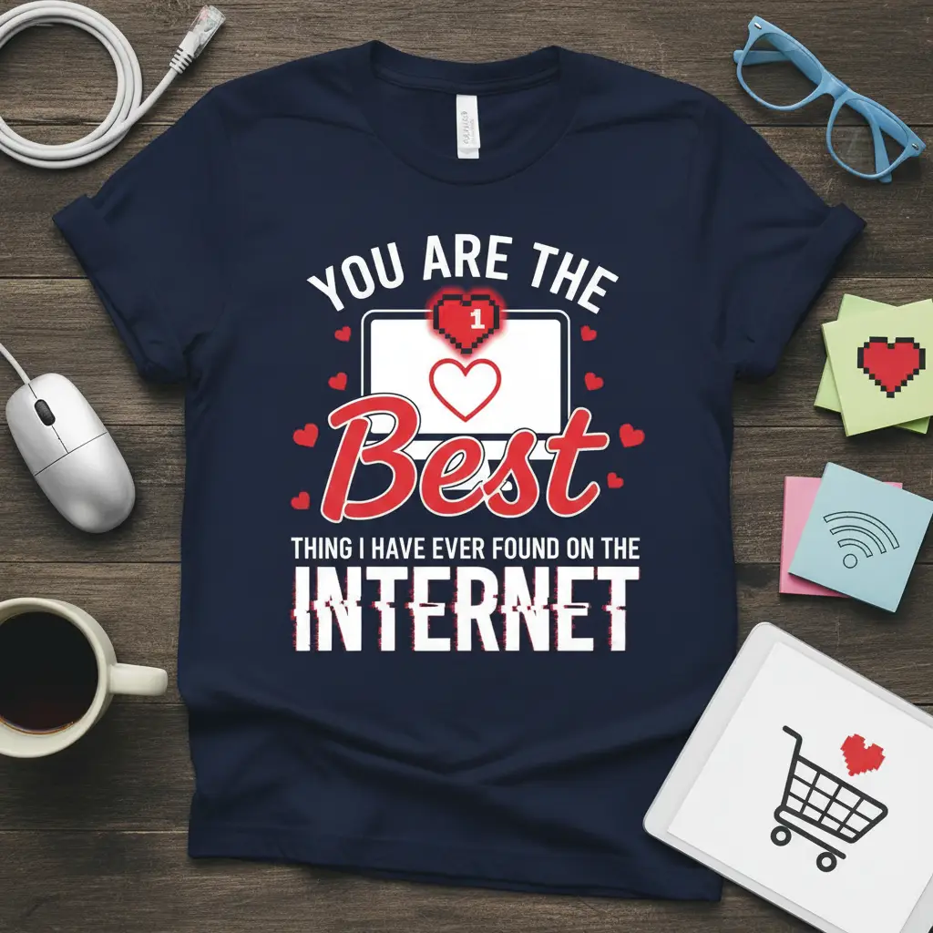 You Are The Best Thing I Have Ever Found On The Internet, this phrase perfectly encapsulates the modern romance that blossoms through screens and connections. This t-shirt is more than just apparel; it’s a declaration of love for that special someone discovered in the vast digital landscape. Whether you met on a dating app, through social media, or in an online game, this design speaks to the unique journey of finding your perfect match online. It’s a testament to how technology can bring hearts together, creating bonds that are as real and profound as any formed offline.