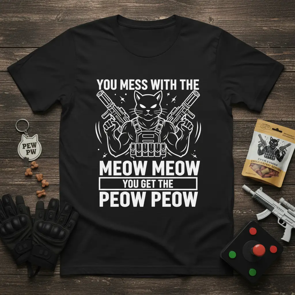 If you’re a fan of internet culture, memes, and, of course, cats, this t-shirt is an absolute must-have. It taps into the playful and sometimes fierce nature that many associate with cats, all wrapped up in a humorous and stylish package. The “Meow Meow, You Get The Peow Peow” slogan is instantly recognizable to those in the know, making it a fantastic way to connect with fellow enthusiasts.