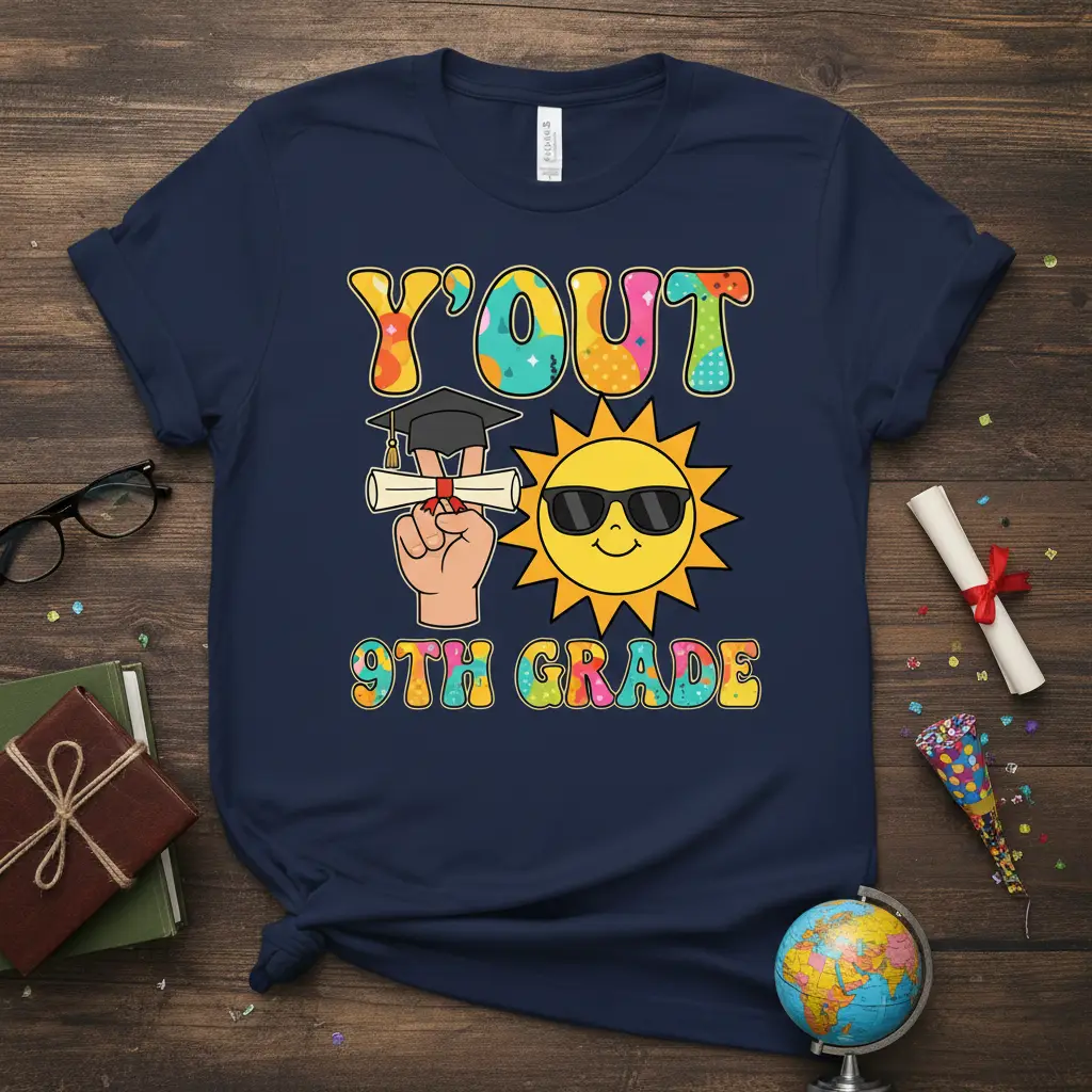 Don’t miss out on this must-have graduation tee! It’s the perfect way to capture the essence of your 9th-grade accomplishment and step into the future with confidence and style. Order your Y’OUT 9TH GRADE t-shirt now and celebrate this special moment with a design that truly stands out. It’s an ideal gift for friends, family, or yourself – a fantastic way to commemorate a year of hard work and success.
