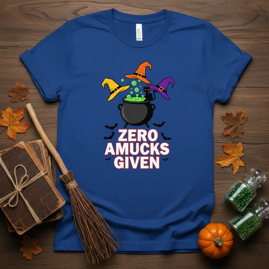 Don’t miss out on the chance to own this incredibly fun and stylish “Zero Amucks Given” t-shirt. It’s the perfect way to celebrate Halloween and showcase your festive spirit with a touch of humor. Whether you’re buying it for yourself or as a gift for a loved one, this shirt is guaranteed to be a hit. Add this unique piece to your collection and get ready for a season filled with laughter and spooky fun. Order yours now and get ready to embrace the Halloween magic with a smile!